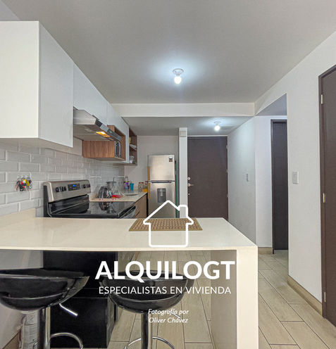 Este apartamento incluye línea blanca en la cocina la cual se integra muy bien con la sala y el comedor. El área privada tiene 1 habitación y 1 baño.